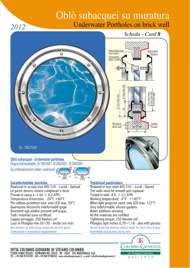 Il hublot étanche sous l'eau pour une utilisation dans les piscines mur de maçonnerie avec une épaisseur de 40 / 50mm.