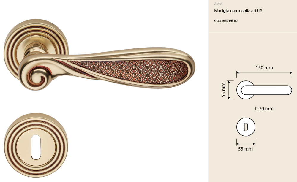 Achetez la poignée de porte Aisha Linea Calì sur Windowo : choisissez votre finition et votre trou de serrure et emportez chez vous une poignée au charme arabe et au savoir-faire italien authentique.