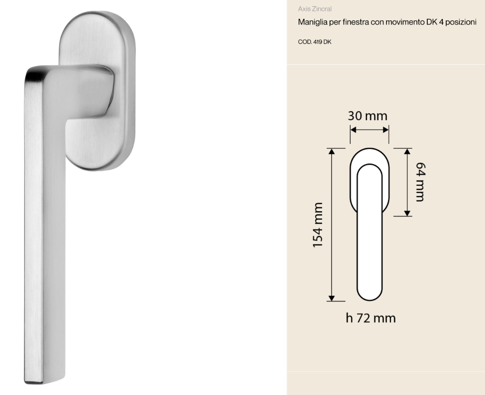 Axis Zincral Linea Calì - Poignée de fenêtre
