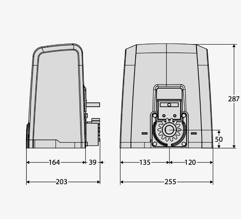 - Kit complet 24V pour portails coulissants jusqu'à 400 kg. Vitesse du vantail 12 m/min ;