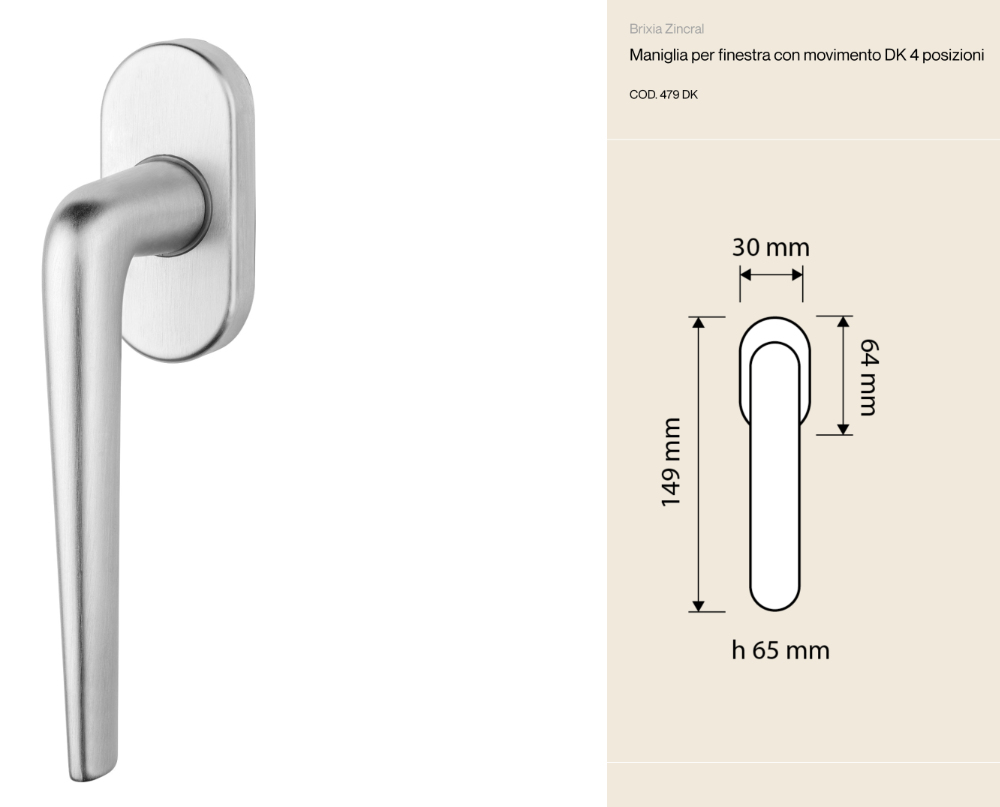 Brixia Zincral Linea Calì Poignée de fenêtre oscillo-battante