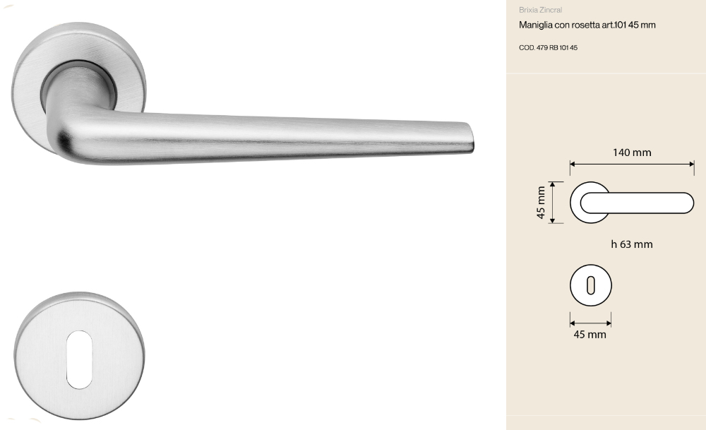 Brixia Zincral Linea Calì - poignée de porte intérieure avec rosace et rosace, au design élégant et disponible en différentes finitions Fabriqué en Italie.