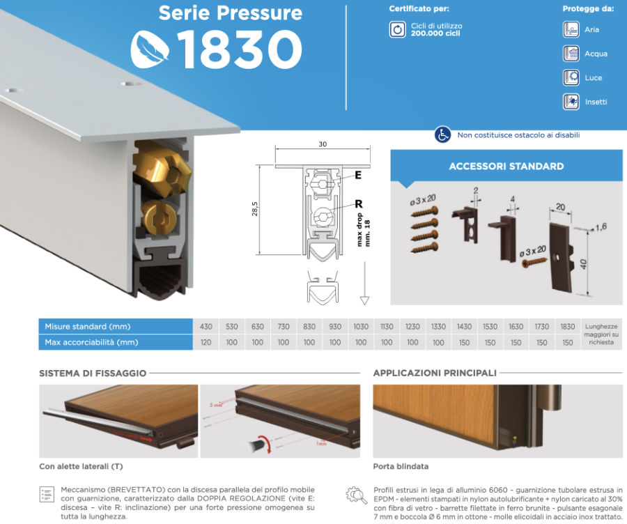 boudin de porte à pression Comaglio série 1830 est conçu pour offrir une isolation optimale pour les portes blindées.