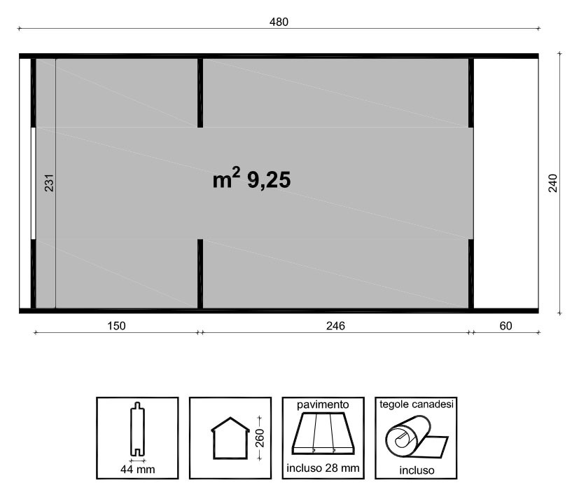 Camping Pod en bois de sapin - Bungalow de camping 240x480 cm - Forme de tente