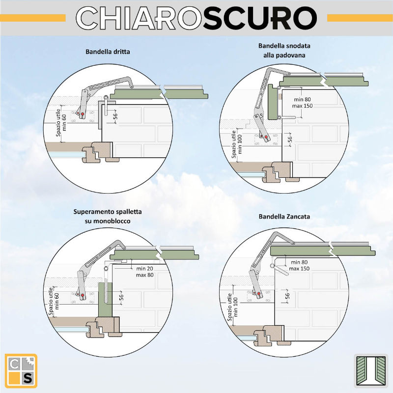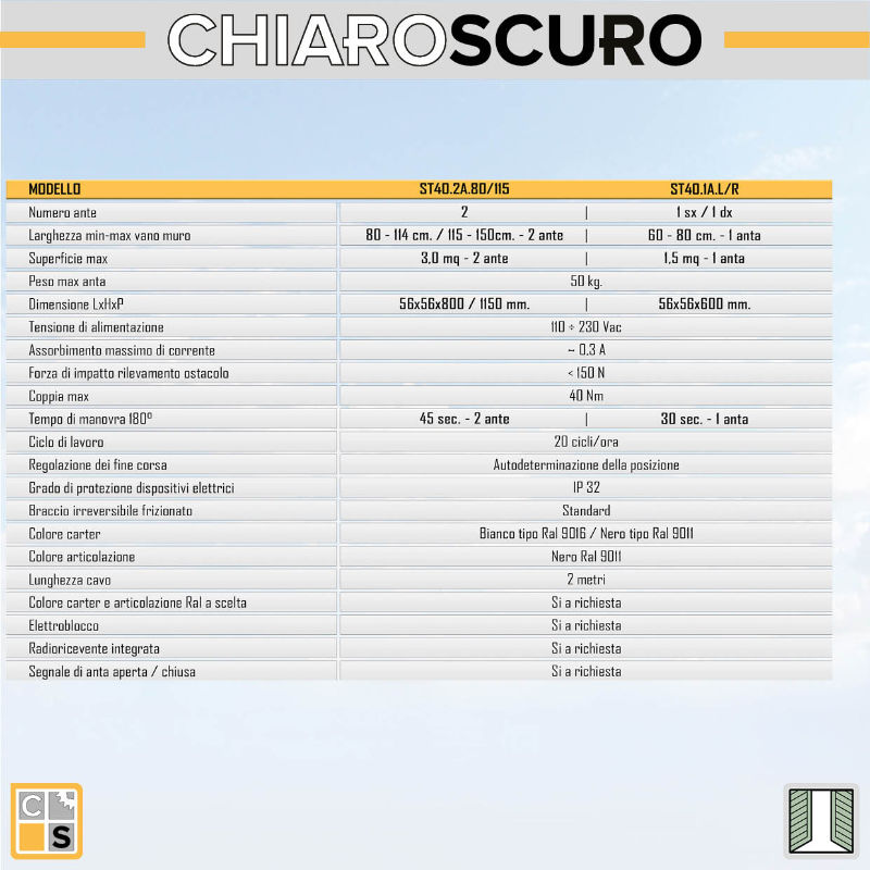 Chiaroscuro ST40 - Moteur pour volets battants, la motorisation historique dotée d' un mouvement de bras breveté qui permet des dimensions très réduites de seulement 60 mm.