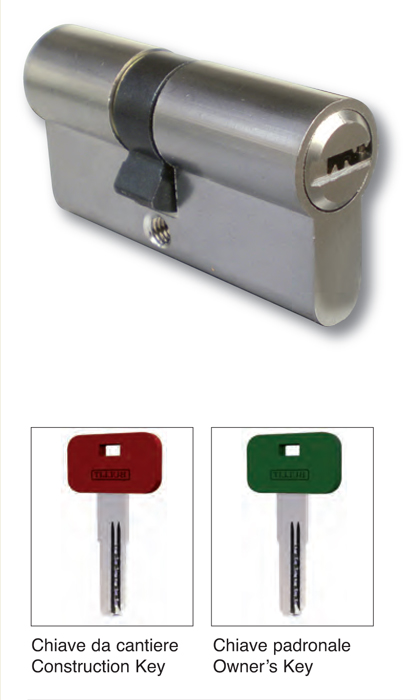 Touche rouge pour être utilisé uniquement pendant le travail. Une fois inséré la clé principale sur les deux côtés du cylindre et effectue un tour complet de la même, la clé de la construction devient inutilisable.