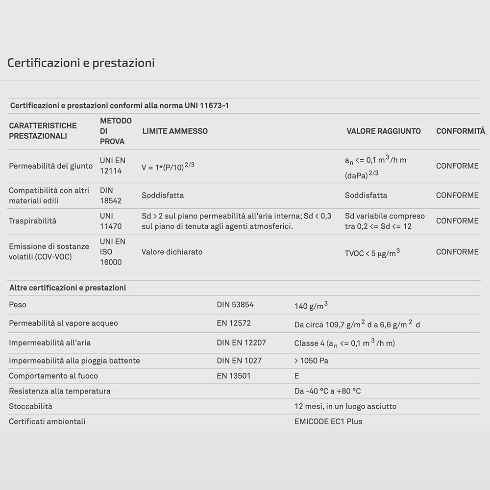 - Emission de substances volatiles (COV-COV) (UNI EN ISO 16000): TVOC <5 µg / m3