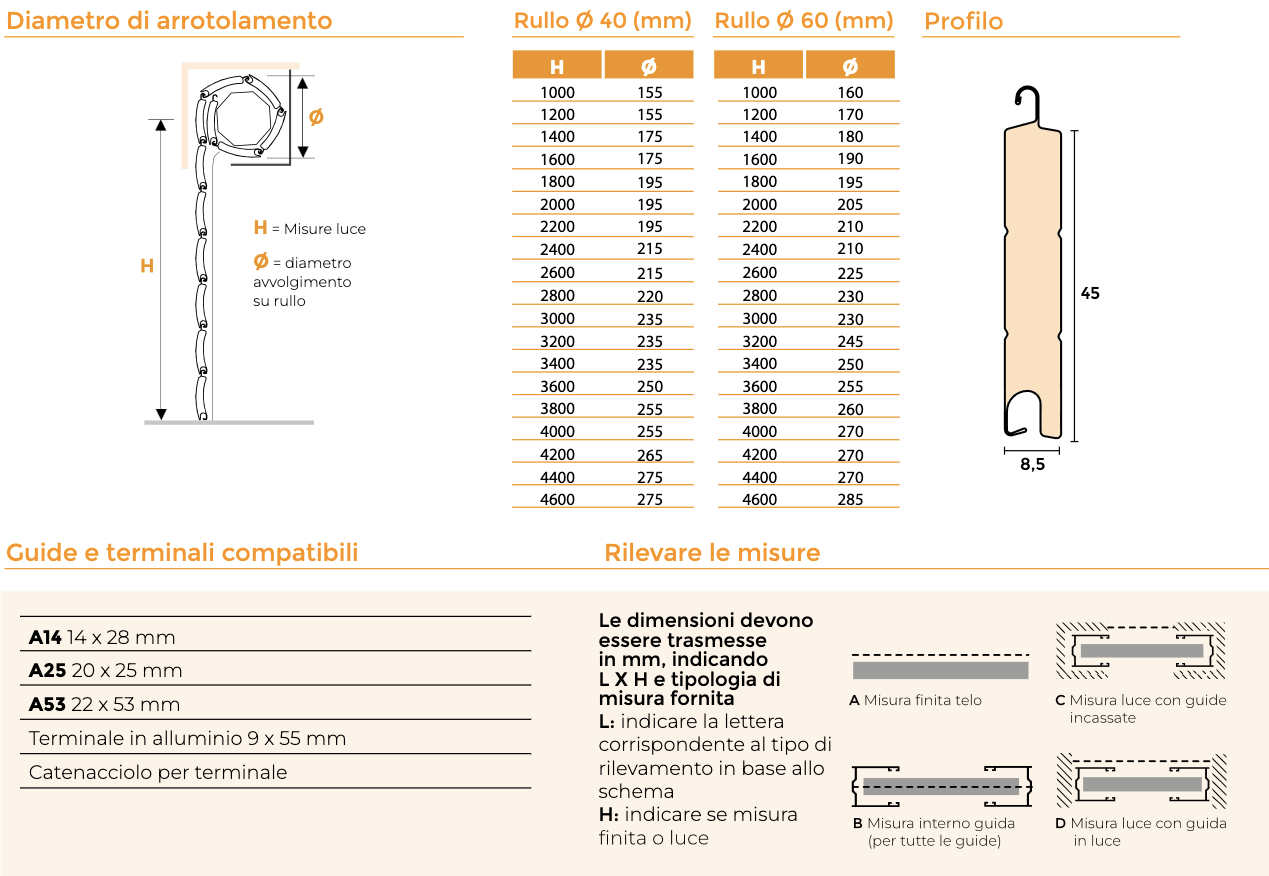 Lors de la commande, indiquez la mesure en millimètres de la base et de la hauteur (en précisant si la mesure du volet roulant est finie ou creuse).