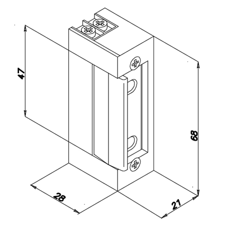 Gâche électrique pour portes en aluminium ou en bois avec serrures à pêne demi-tour et pêne.