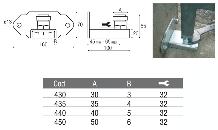 Gonds Inférieurs Réglables à Visser pour Portails Battants