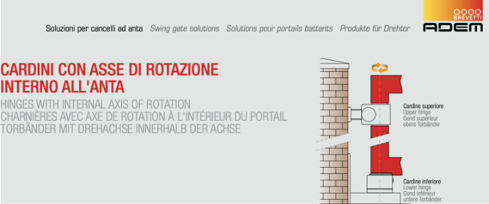 Type : charnières avec axe de rotation à l'intérieur de la porte.