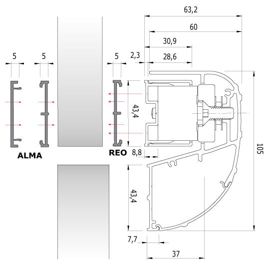 Profil d'électroaimant pour l'installation de cadre de porte.