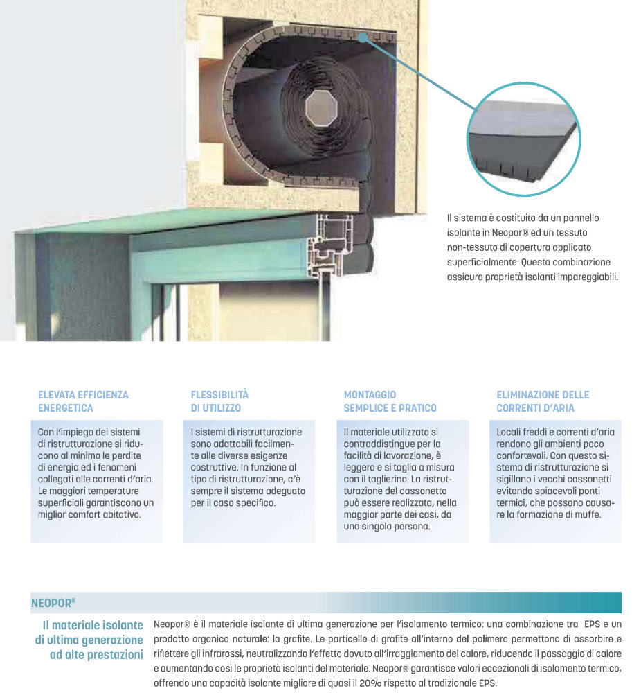 Il peut être commandé en ligne soit sous forme de panneau unique, soit sous forme de système à deux composants , qui comprend également la base rigide pour le fond du caisson, pour une étanchéité encore plus efficace contre les ponts thermiques et les infiltrations d'air.