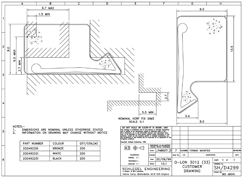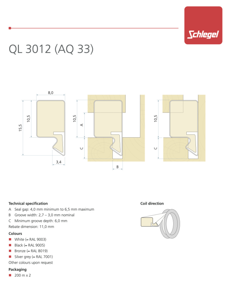 Caractéristiques du joint de fenêtre Schlegel QL 3012