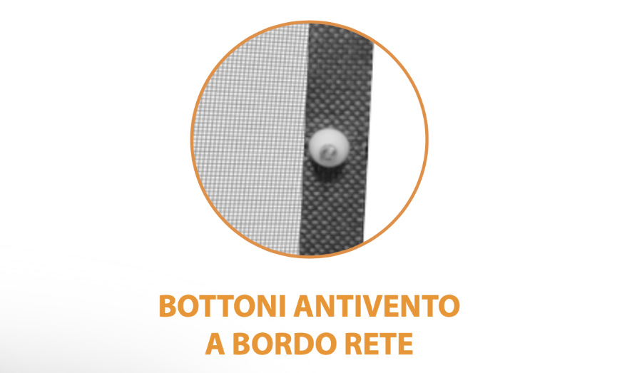 boutons coupe-vent sur le bord de la moustiquaire.