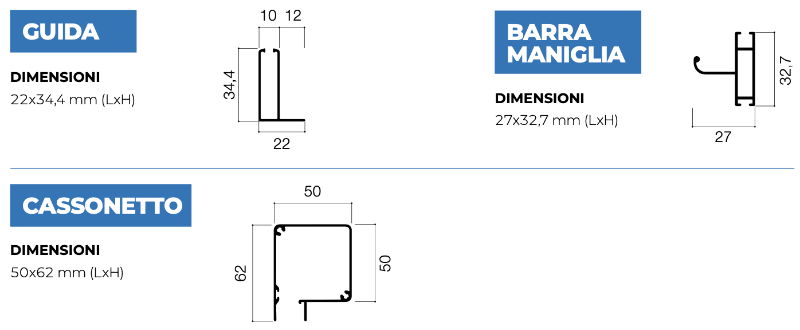 Le guide télescopique permet l'installation de la moustiquaire dans des espaces irréguliers jusqu'à 2 cm de différence de largeur. Avec le caisson 40 mm, utilisez les collecteurs habituels, c'est pourquoi il est conseillé d'indiquer la mesure de la largeur supérieure.