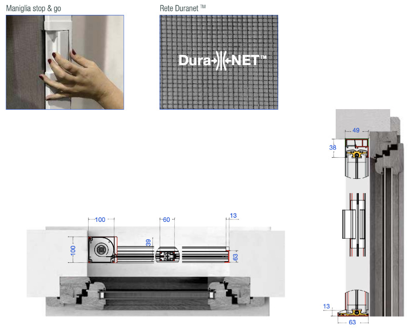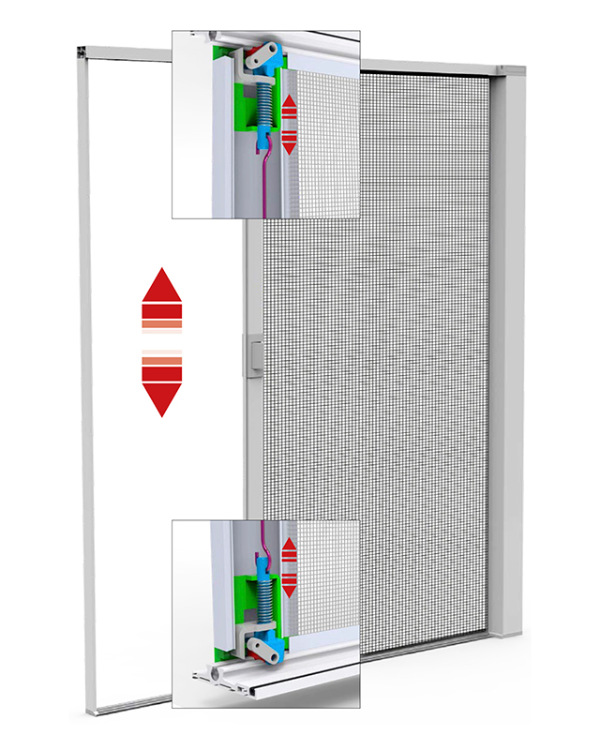 moustiquaire latérale avec poignée Stop & Go , caisse arrondie de 100 mm et caractérisée par une