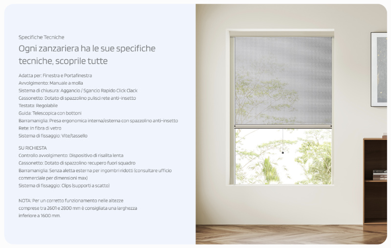 Moustiquaire verticale pour fenêtre - Officine Rami Mistral 50 Click Clack - Tête réglable et guide télescopique avec boutons