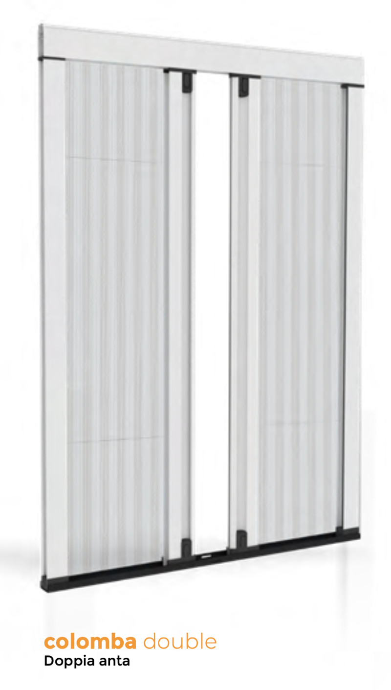 Particulièrement adaptée aux portes-fenêtres, c'est la version Colomba double ( ouverture double face ). Idéal pour couvrir une largeur allant jusqu'à 3 mètres par vantail.