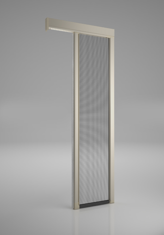 Facile à installer, il s'adapte également aux espaces non parfaitement carrés. Le pré-équipement électrique des moustiquaires doit être prévu sur le côté du boîtier (une par porte).