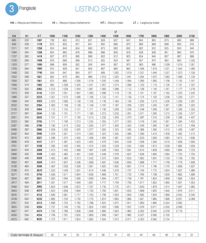 - Mécanismes métalliques de mouvement et d'orientation contenus dans les guides latéraux autoportants, section mm. 80x45 (raccord + 3 mm), avec joints insonorisants en polyéthylène