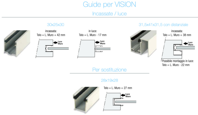 Les stores VISION sont fournis avec une borne en aluminium extrudé avec un élément de support escamotable et sont compatibles avec les guides en aluminium extrudé équipés de brosses.