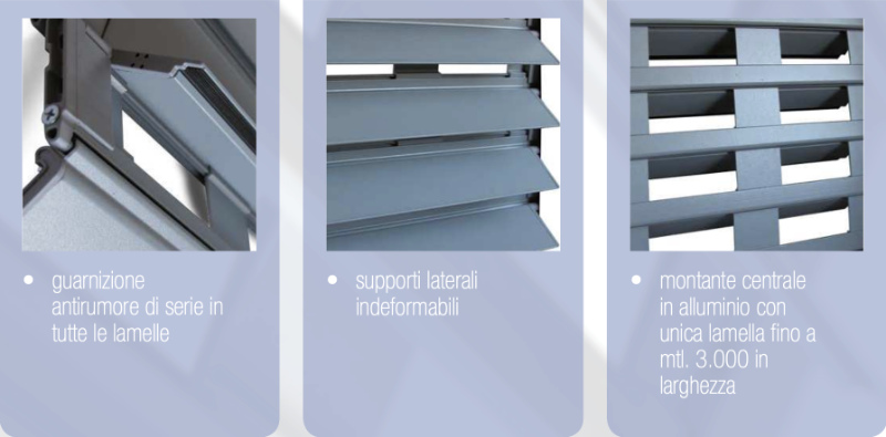 Les volets roulants réglables Pasini VISION se déplacent comme un volet roulant et avec réglage de l'inclinaison des lames , comme pour un pare-soleil.