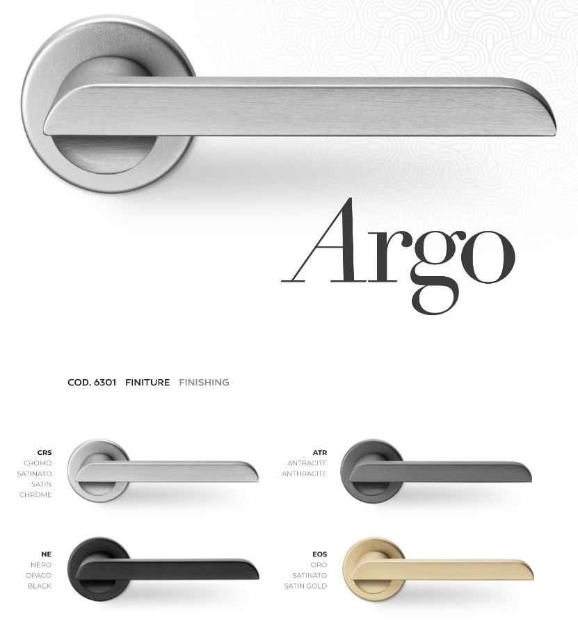 Disponible dans une variété de finitions raffinées (chrome satiné, anthracite, noir mat et or satiné) , la poignée Argo vous permet de personnaliser les espaces en fonction de votre style, du minimal au sophistiqué.