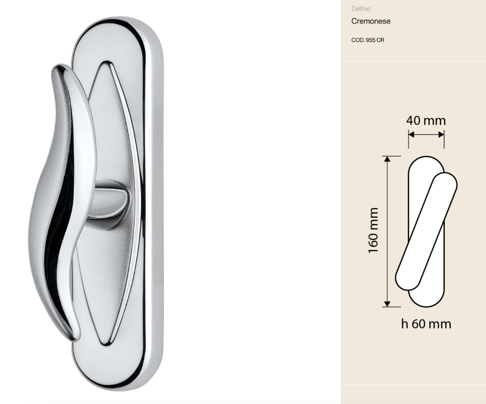 poignée de fenêtre Delfino Linea Calì Cremonese séduit par ses lignes fluides et harmonieuses, évoquant la silhouette élégante d'un dauphin. Un design sculptural et dynamique qui transforme un geste du quotidien en une expérience tactile et visuelle unique.