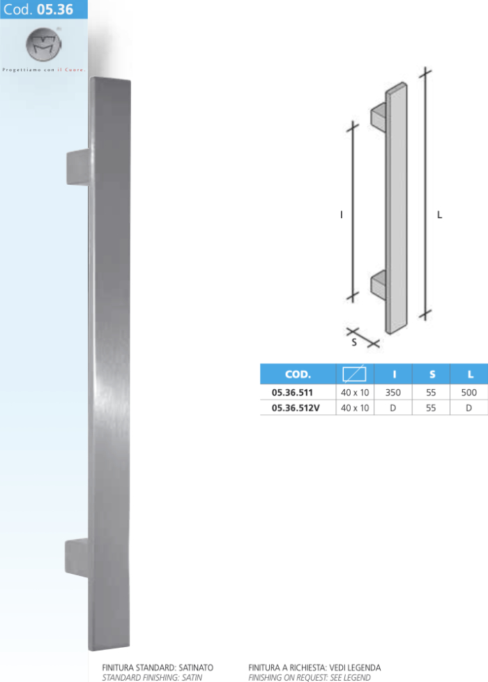 Poignée barre rectangulaire - MPM 05.36 - 40x10 Entraxe 350