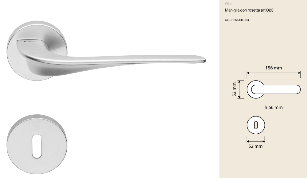Fabriquée en laiton de haute qualité dans le quartier industriel de Brescia, cette poignée est entièrement fabriquée en Italie, synonyme de précision et de durabilité. Parfaite pour les maisons individuelles comme pour les projets professionnels, Wind est un choix élégant et fiable.