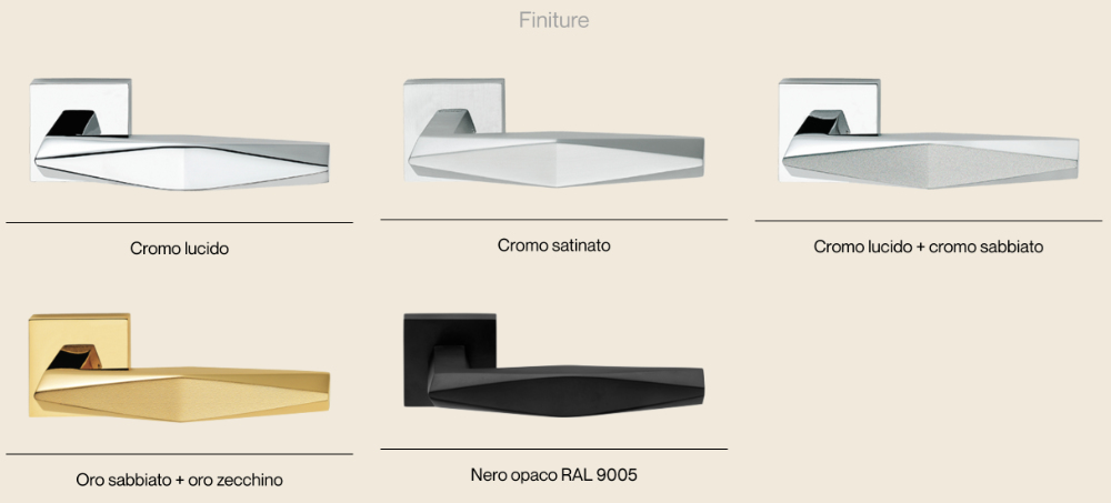 Disponible dans une variété de finitions haut de gamme , notamment le chrome poli, le chrome satiné, l'or sablé + l'or pur et le noir mat RAL 9005, cette poignée s'intègre parfaitement dans des décors contemporains et raffinés, ajoutant une touche d'élégance architecturale à n'importe quel espace.