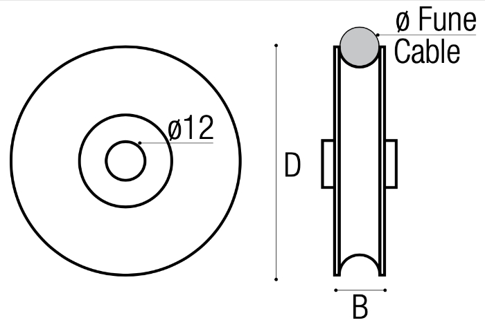 Roue en acier pour portes sectionnelles - Rainure ronde - avec bagues D. 12