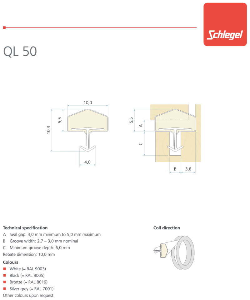 Schlegel QL 50 est un joint de haute qualité conçu pour fournir une excellente étanchéité sur les portes intérieures et les meubles en bois.