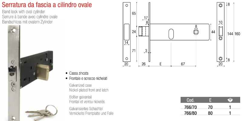 Serrure à Bande avec Cylindre Ovale pour Portail Battant Code 766 Adem