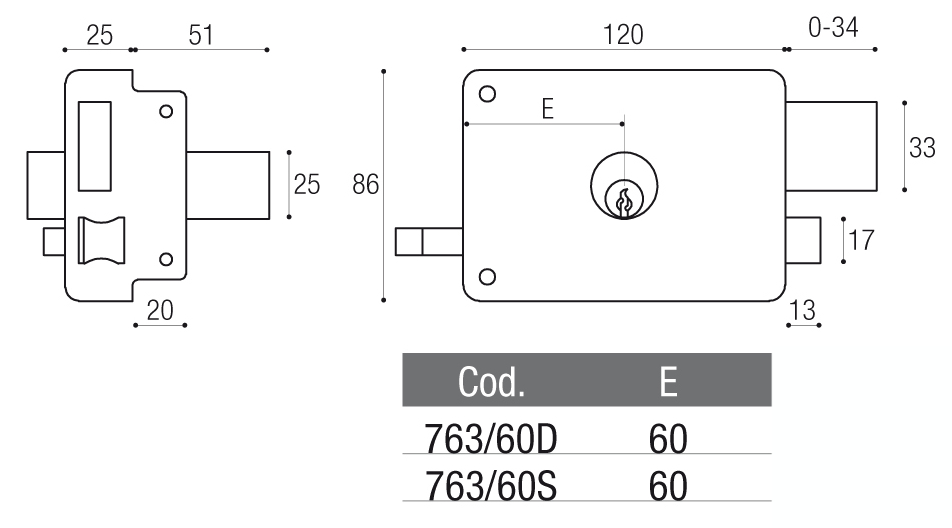 - Serrure mécanique à appliquer Brevetti Adem code 763/60;