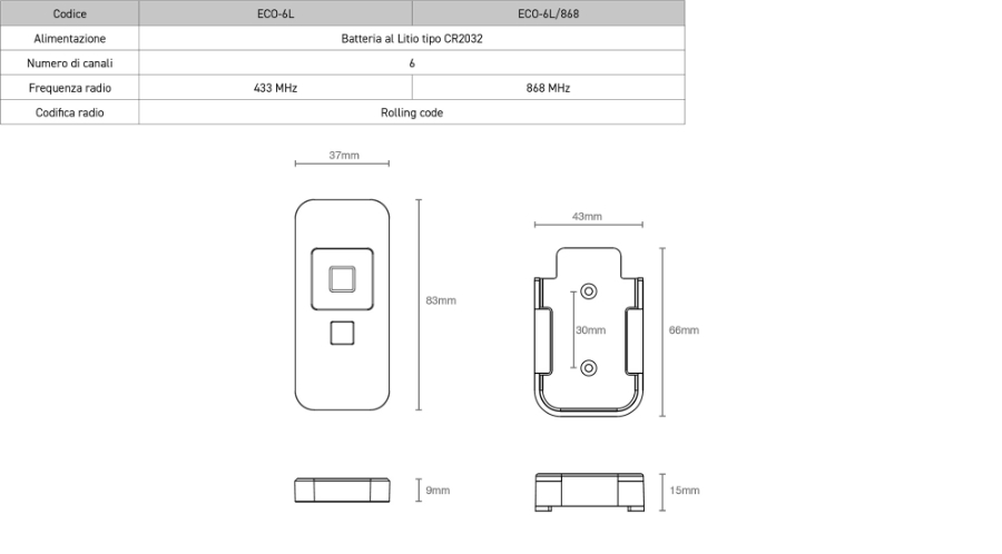Caractéristiques techniques de la radiocommande Comunello AF 890