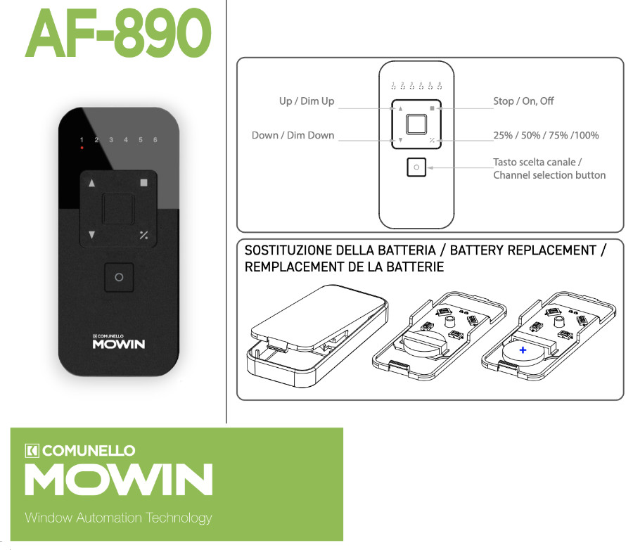 Radiocommande Comunello AF 890 à 6 canaux pour actionneurs électriques
