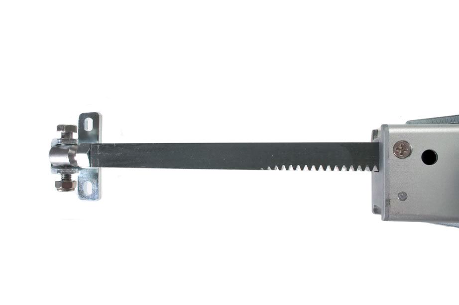 Accessoires fournis : support coulissant en acier zingué cod. 40235F (permet de fixer toute la longueur de l'actionneur), connecteur en acier galvanisé pour la fixation de la tige au vantail mobile.