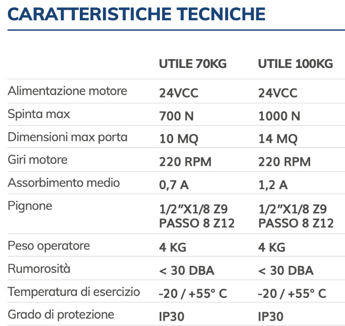 - Absorption moyenne : 0,7 A (UTILE 70KG) ou 1,2 A (PROFIT 100KG) ;