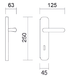 Plate 250x45 mm - Poignée 125 mm - Easy Line.