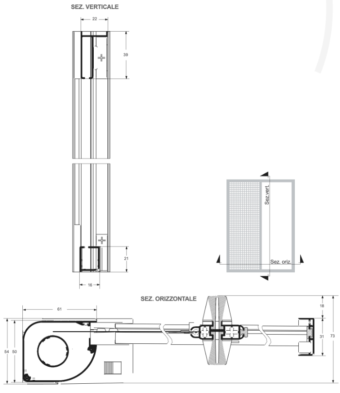 - Guide au sol 21 mm (guide arrondi 17 mm en option);