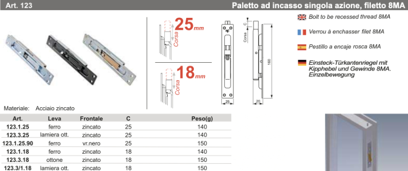Filetage Pôle Encastré Simple Action 8MA Nova-Ferr 123