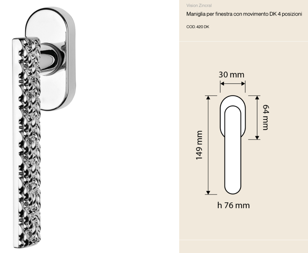 Vision Zincral Linea Calì - Poignée de fenêtre DK - Poignée en relief