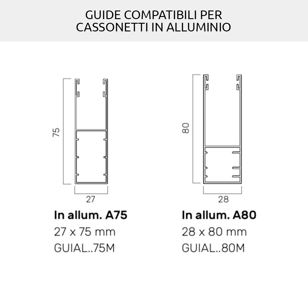 - Remplacement ou nouvelle installation de volets roulants et glissières: pour la largeur du volet roulant, en référence aux guides à utiliser, les tolérances nécessaires doivent être prises. Vous pouvez utiliser les anciens guides s'ils sont en bon état et s'ils ont au moins 16,5 mm d'espace utilisable à l'intérieur.